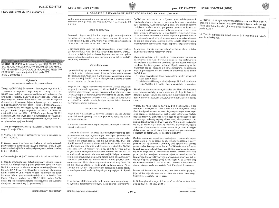 • Ogłoszenie do wykonania prawa poboru (MSiG 106/2024 – czerwiec 2024)