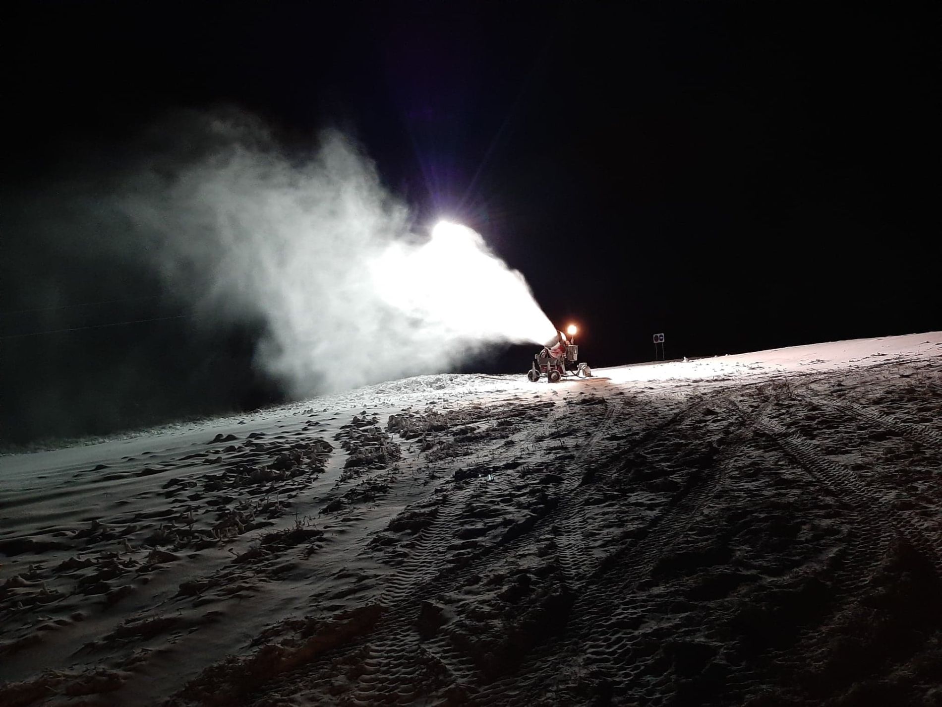 W piątek rozpoczęło się naśnieżanie tras narciarskich. Śnieżymy trasę nr 1 (2600m), trasę nr 3 (700m) oraz trasę nr 5(1000m). Armatki pracują pełną mocą. Warunki są sprzyjające, jest mała wilgotność i mróz. Trzymajcie kciuki za śnieżenie i wszystko pozostałe również.